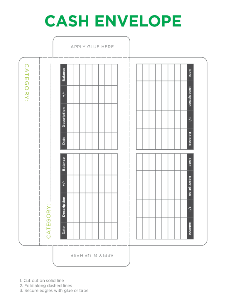 CASH ENVELOPE Balance Date +/Description+/Description DateBalanceDateBalance +/Description+/DescriptionDateBalanceCAT EGO RY: ___CATEGORY: ___APPLY GLUE REAPPLY GLUE HERE 1. Cut out on solid line