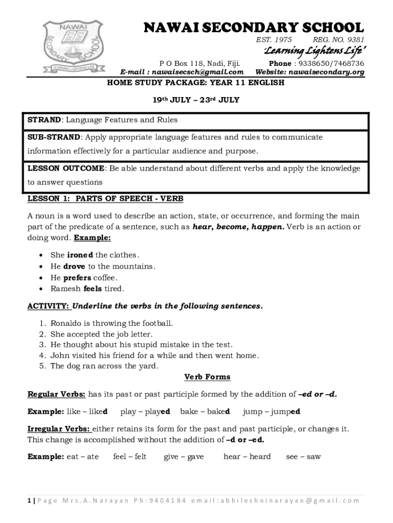 AWAY SECONDARY SCHOOL EST. 1975 P O Box 118, Nazi, Fiji. Email : nawaisecsch@gmail.comREG. NO. 9381 Learning Lightens Telephone : 9338650/7468736 Website: nawaisecondary. Rehome STUDY PACKAGE: YEAR