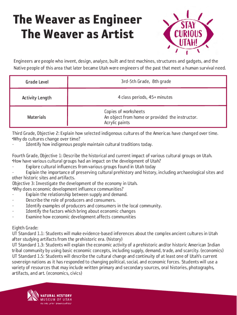Get the free Weaver as Engineer/Artist - Natural History Museum of Utah - nhmu utah