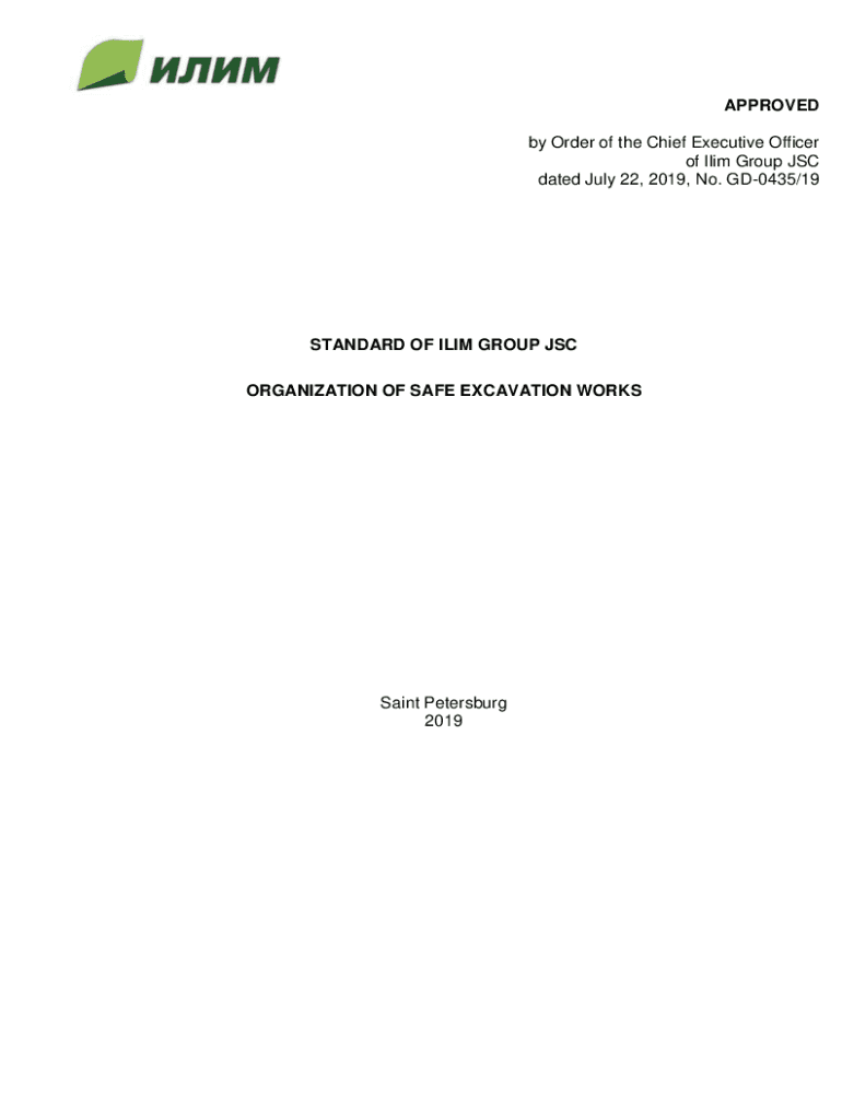 APPROVED by Order of the Chief Executive Officer of Slim Group JSC dated July 22, 2019, No. GD0435/19STANDARD OF SLIM GROUP JSC ORGANIZATION OF SAFE EXCAVATION Toussaint Petersburg 2019CONTENTS 1.