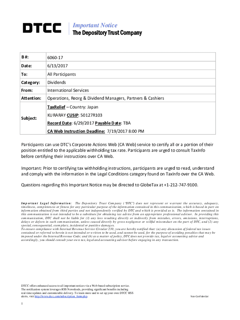 TaxReliefCountry:JapanSubject:KURARAYCUSIP:50127R103