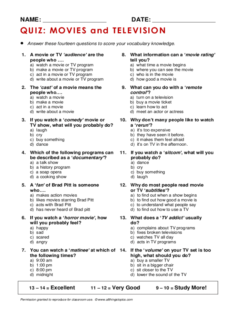 Fill out your quiz movies and television online with pdfFiller!
