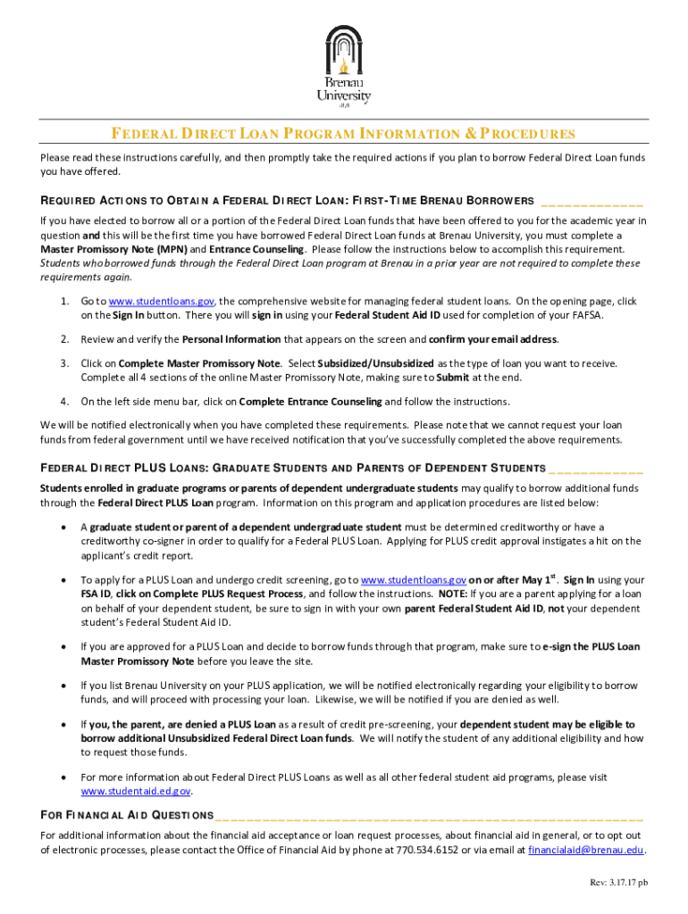 Get the free Federal Direct Loan Program: Definition and How It Works - archive brenau