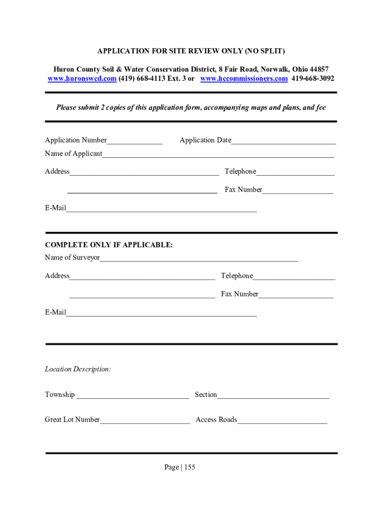 APPLICATION FOR SITE REVIEW ONLY (NO SPLIT) Huron County Soil & Water Conservation District, 8 Fair Road, Norwalk, Ohio 44857 www.huronswcd.com (419) 6684113 Ext. 3 or www.hccommissioners.com 4196683092Please