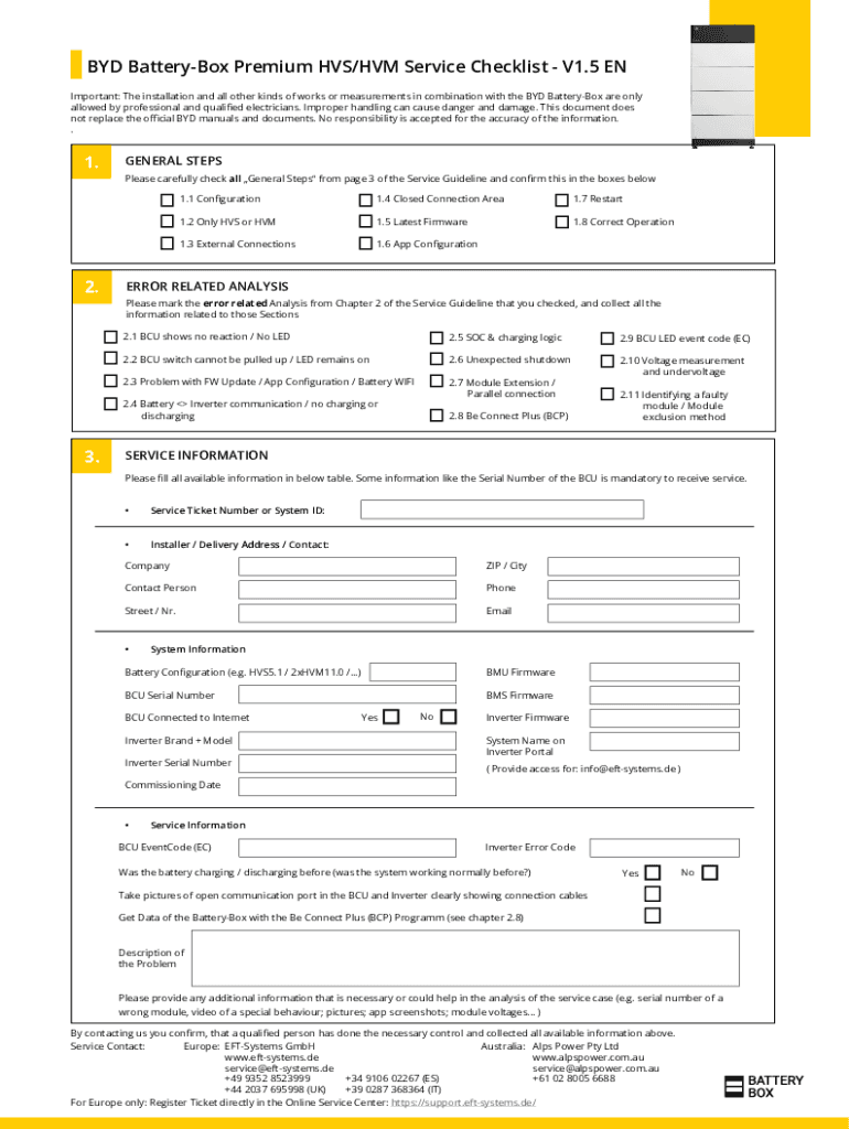 Get the free BYD Battery-Box Premium HVS/HVM Service Guideline and ...