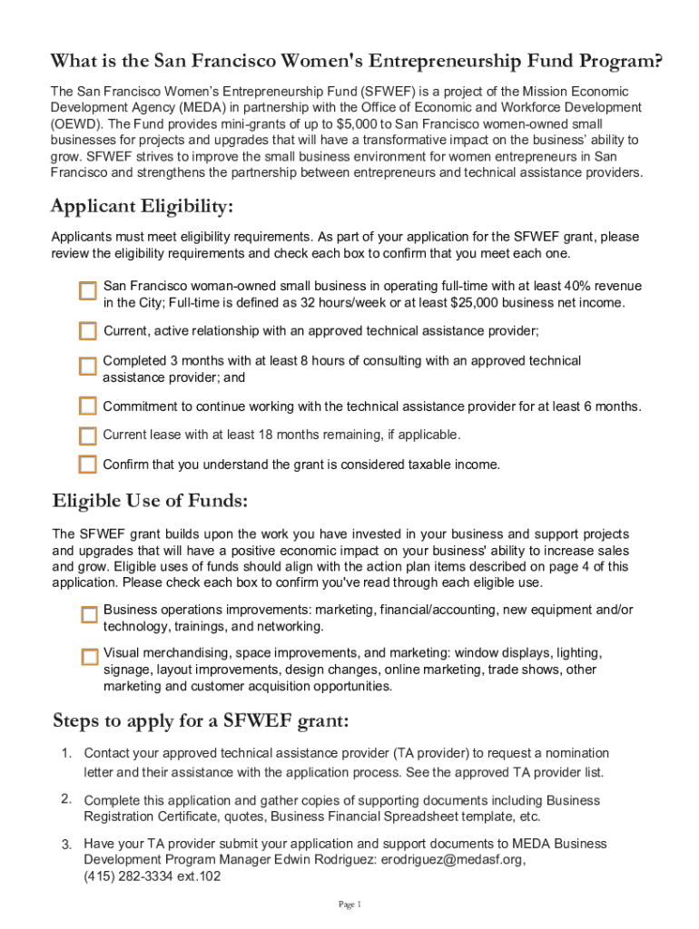 San Francisco Women\'s Entrepreneurship Fund APPLICATIONUpdated: November 2019What is the San Francisco Women\'s Entrepreneurship Fund Program? The San Francisco Women's Entrepreneurship Fund (SEWER)