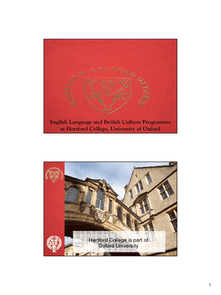 English Language and British Culture Program at Hartford College, University of OxfordHertford College is part of Oxford University1Study in Great Britain Oxford, Britain ()Taiwan 2Welcome to Oxford