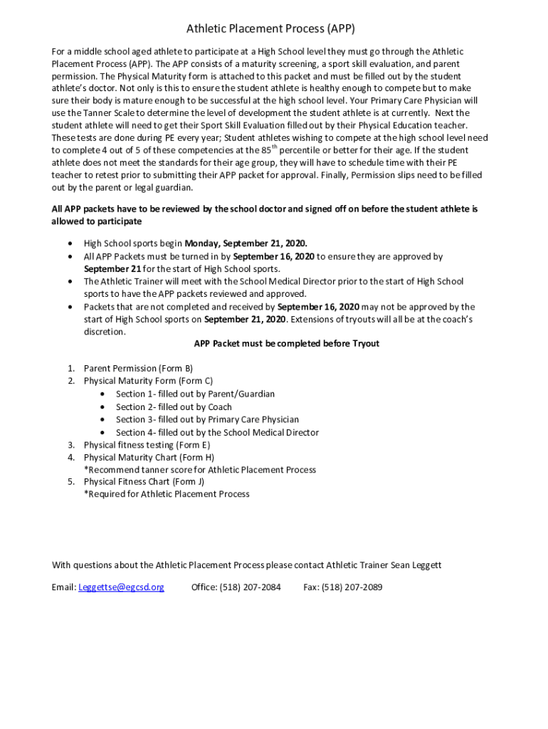 Athletic Placement Process (APP) For a middle school aged athlete to participate at a High School level they must go through the Athletic Placement Process (APP). The APP consists of a maturity screening,