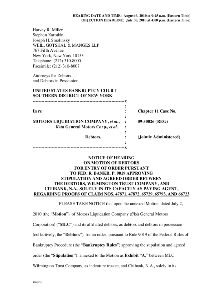 HEARING DATE AND TIME: August 6, 2010, at 9:45 a.m. (Eastern Time)