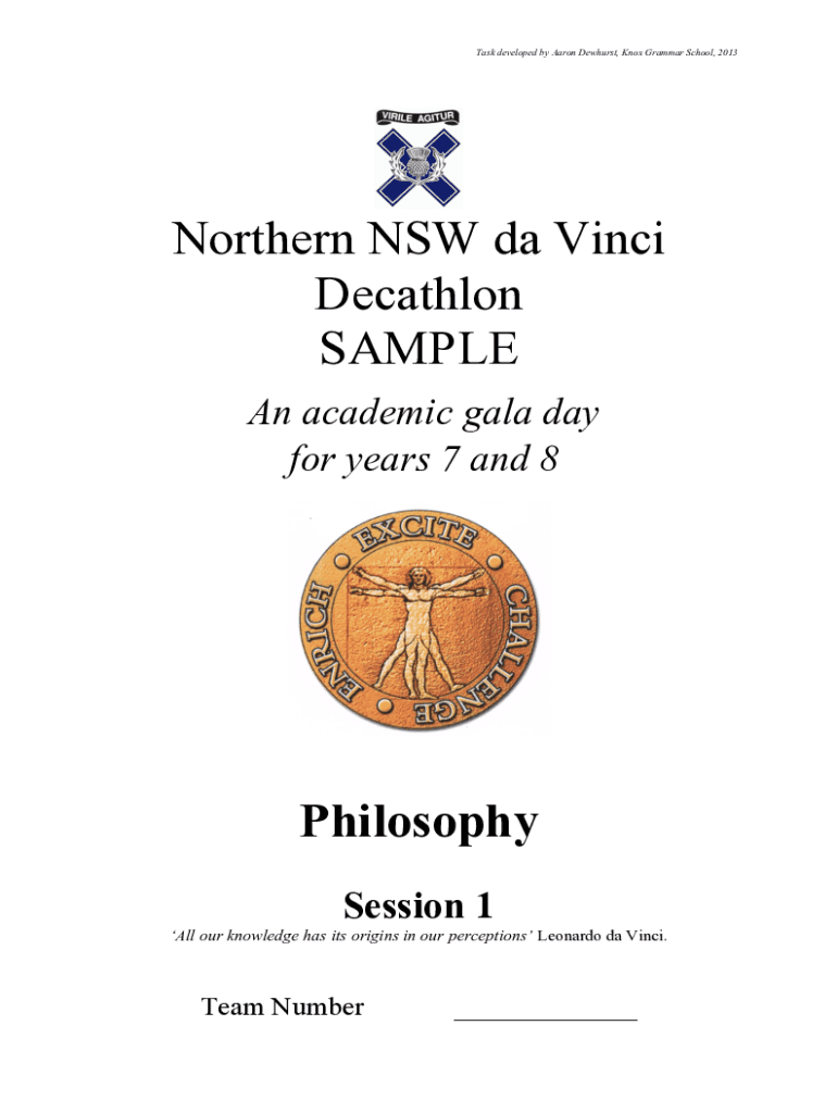 Get the free Northern NSW da Vinci Decathlon SAMPLE Philosophy