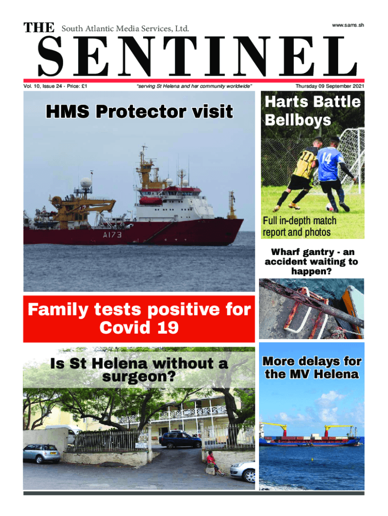 South Atlantic Media Services, Ltd. Vol. 10, Issue 24 Price: 1serving St Helena and her community worldwide HMS Protector visit.same.shThursday 09 September 2021Harts Battle