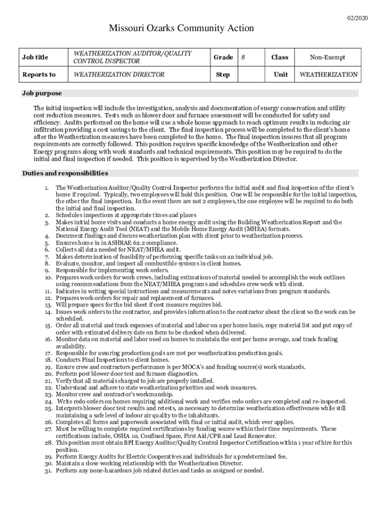 Job titleWEATHERIZATION AUDITOR/QUALITY