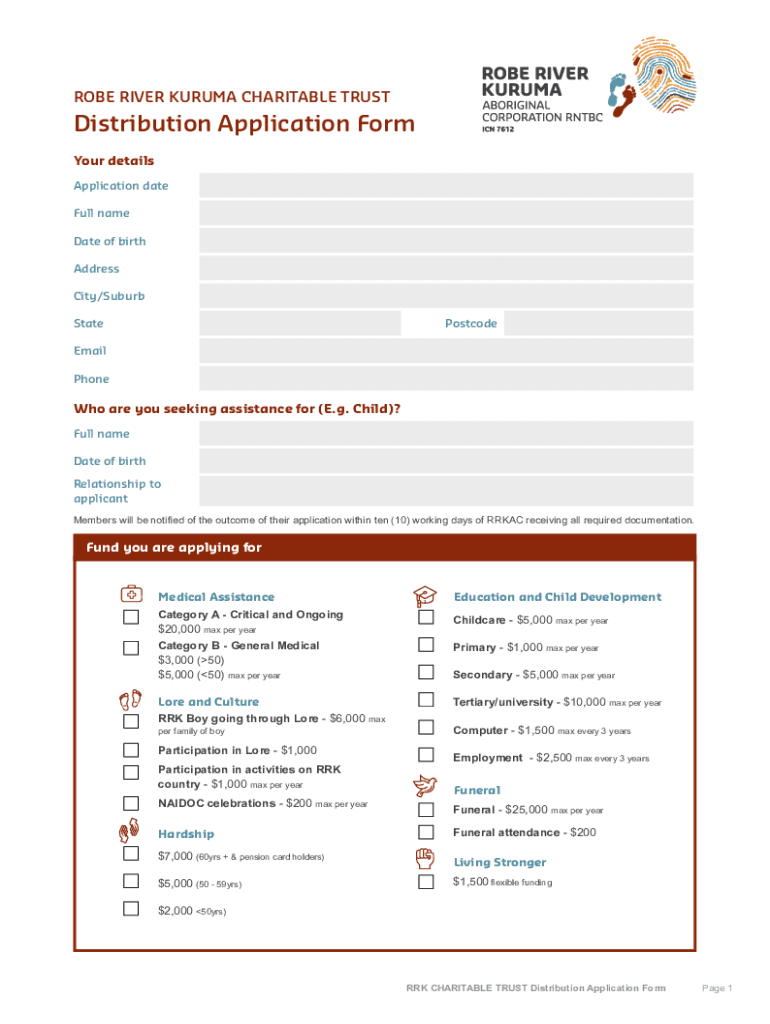 Get the free Distribution Application Form - Robe River Kuruma Aboriginal ...