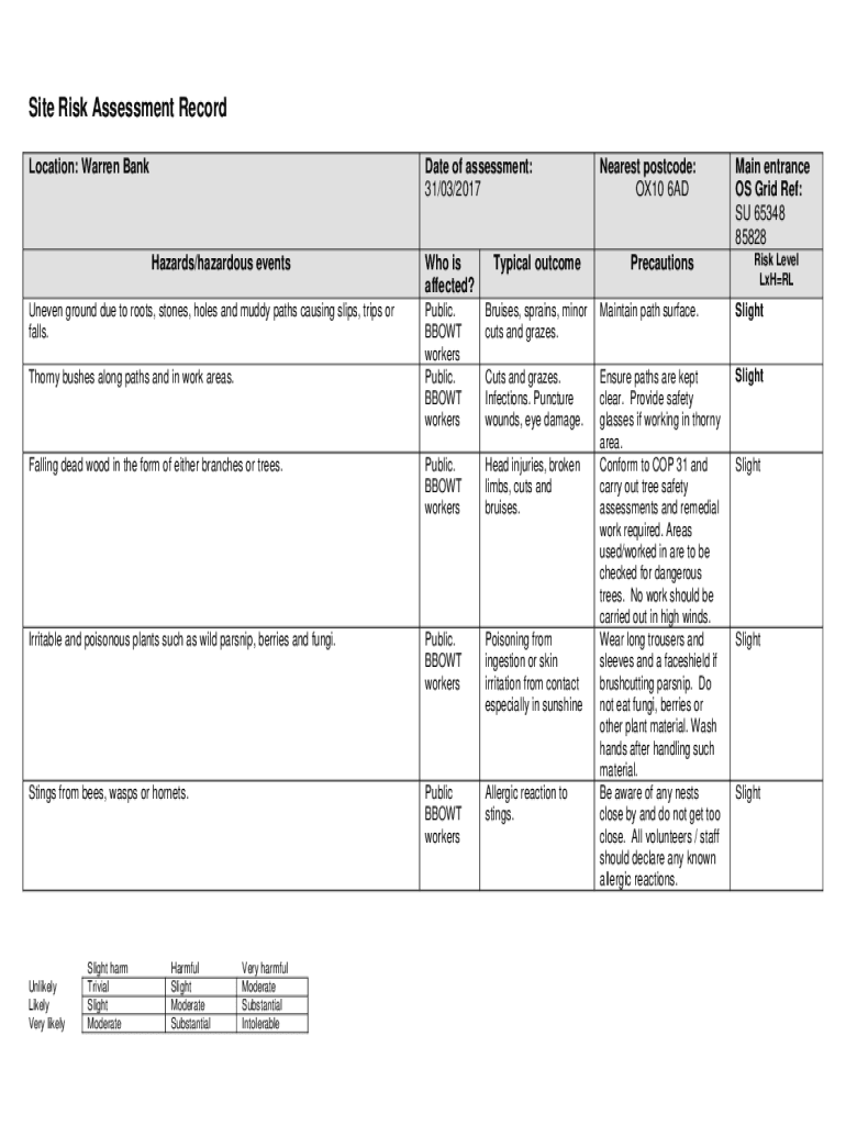 Site Risk Assessment Record
