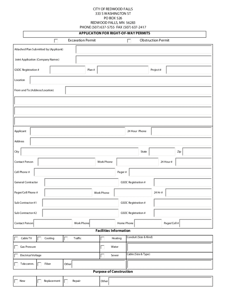 APPLICATION FOR RIGHTOFWAY PERMITS