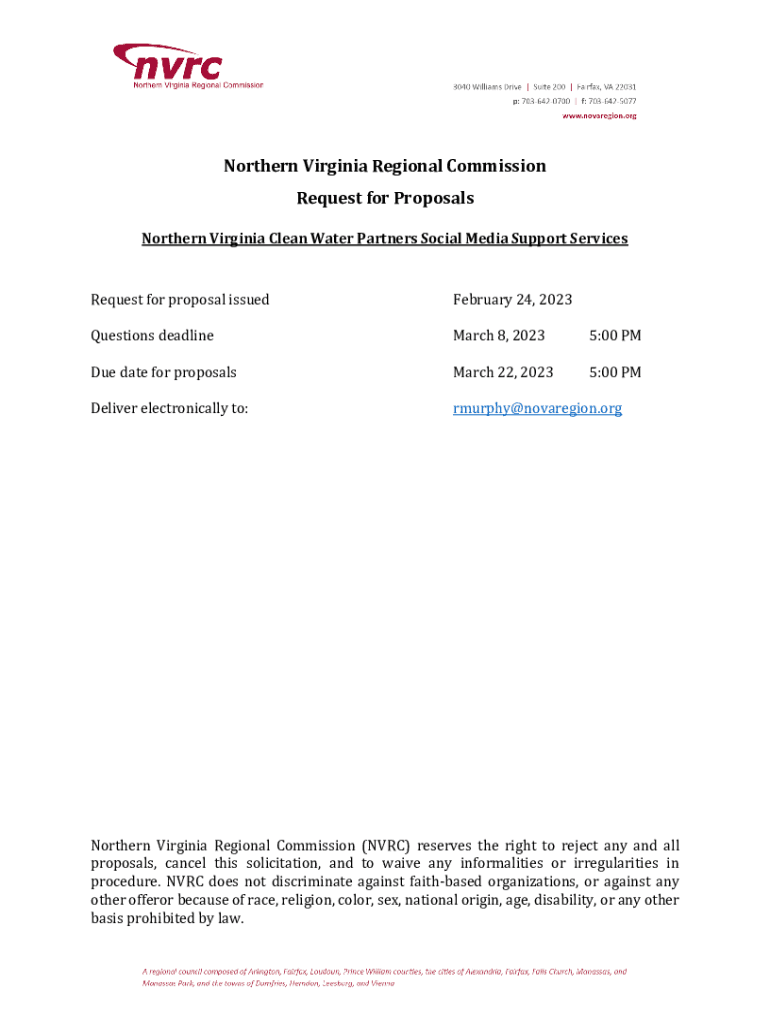 Get the free Northern Virginia Regional Commission Request for Proposals