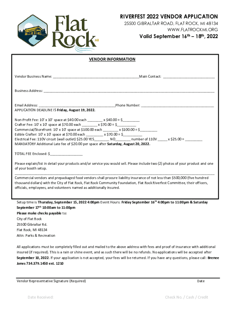 Get the free RIVERFEST 2022 VENDOR APPLICATION - Flat Rock
