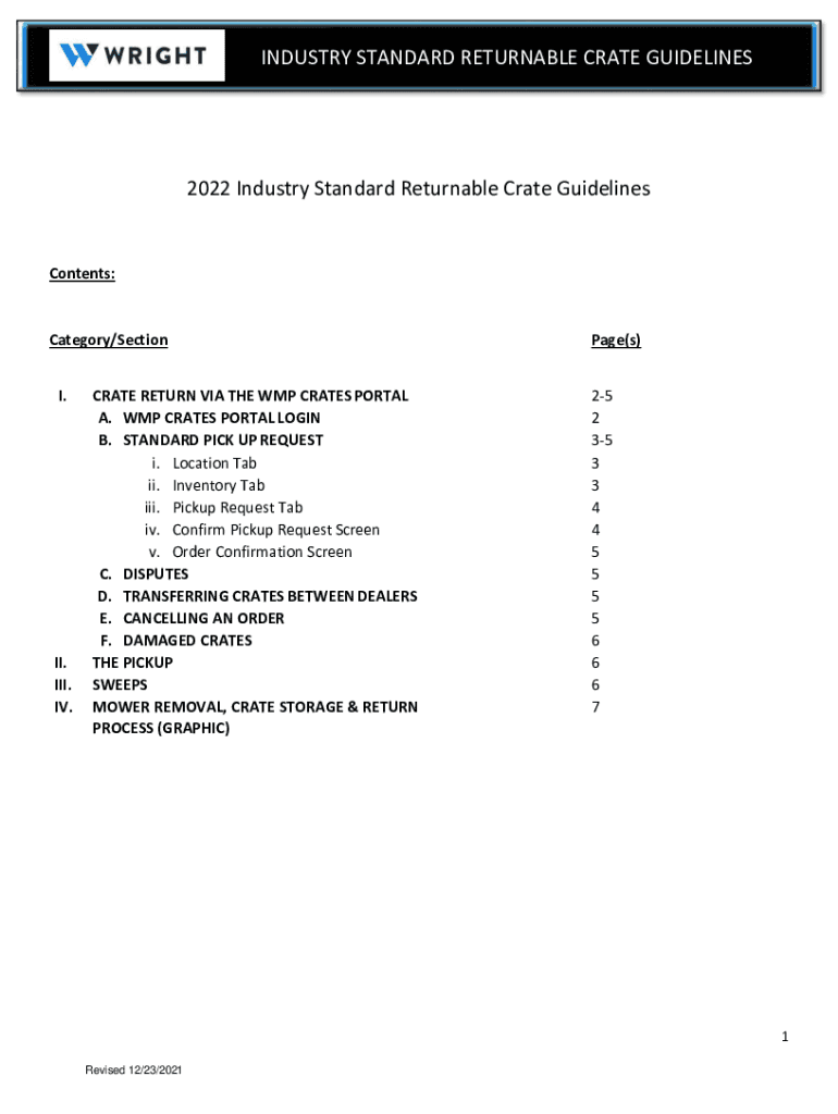 INDUSTRY STANDARD RETURNABLE CRATE GUIDELINES2022 Industry Standard Returnable Crate GuidelinesContents:Category/Section