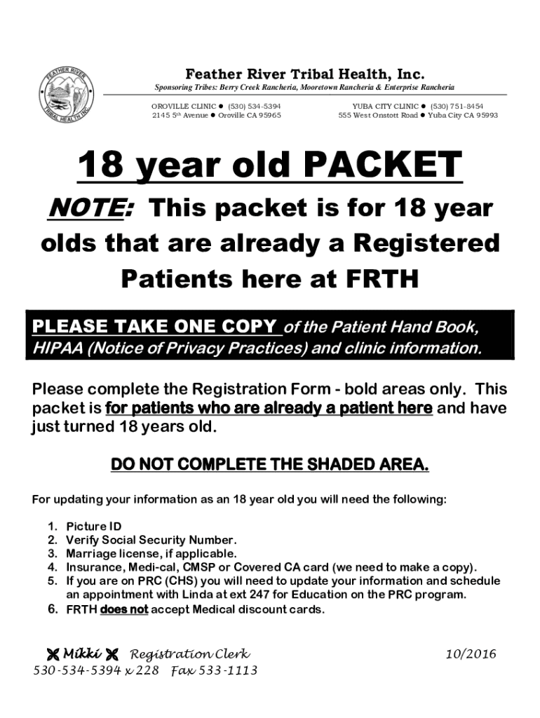 Get the free Feather River Tribal Health, Inc. (Oroville)Northern California