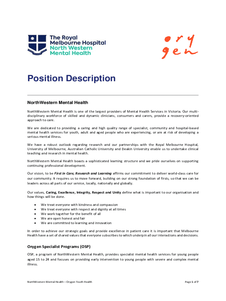 Position Description Northwestern Mental Health Northwestern Mental Health is one of the largest providers of Mental Health Services in Victoria. Our multidisciplinary workforce of skilled and dynamic