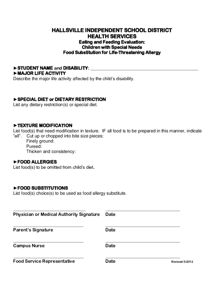 Food Substitution for Life-threatening AllergySTUDENT NAME and DISABILITY: ___