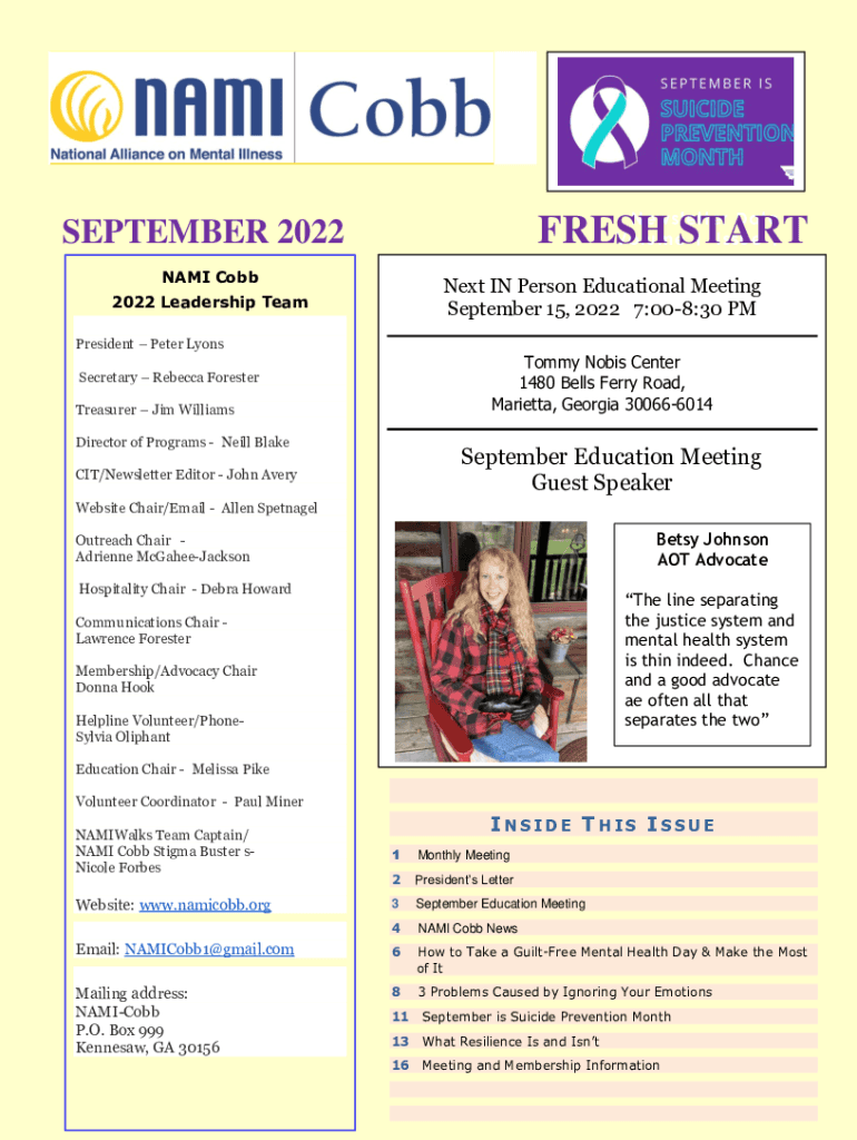 Newsletter Date Volume 1 Issue 1FRESH STARTSEPTEMBER 2022 NAME Context IN Person Educational Meeting September 15, 2022 7:008:30 PM2022 Leadership Team President Peter Lyons Tommy Obis Center 1480