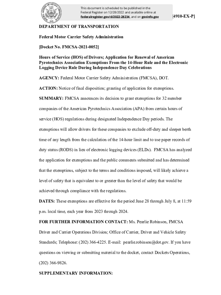 This document is scheduled to be published in the Federal Register on 12/28/2022 and available online at federalregister.gov/d/202228234, and on gov info.gov[4910EXP]DEPARTMENT OF TRANSPORTATION Federal