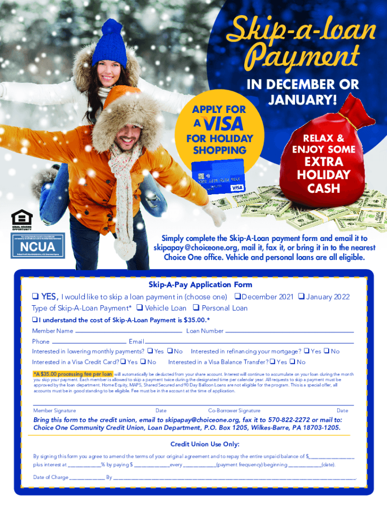 Sinaloan Payment APPLY FOR AIN DECEMBER OR JANUARY!FOR HOLIDAY SHOPPINGRELAX & ENJOY SOMEEXTRA HOLIDAY CASHSimply complete the Sinaloan payment form and email it to skipapay@choiceone.org, mail it,