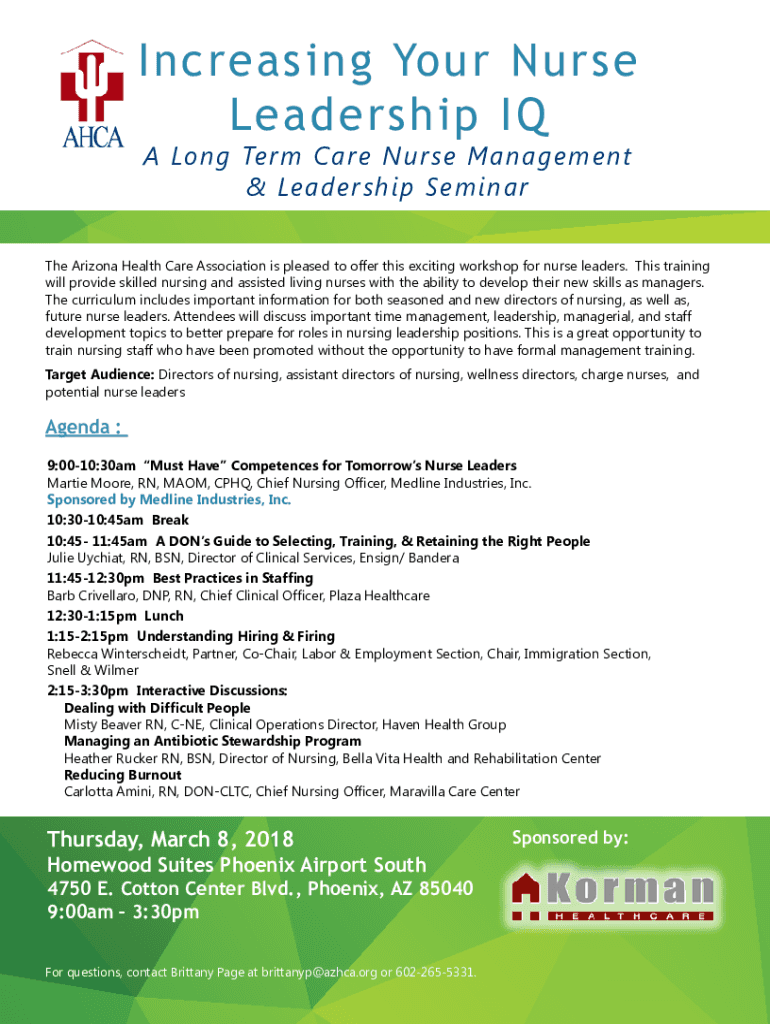 Increasing Your Nurse Leadership IQ A Long Term Care Nurse Management & Leadership Seminary Arizona Health Care Association is pleased to offer this exciting workshop for nurse leaders. This training