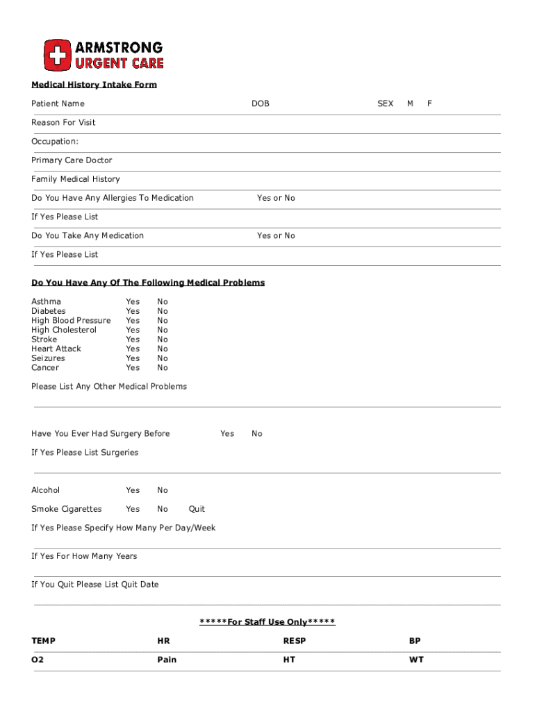 Medical History Intake Form