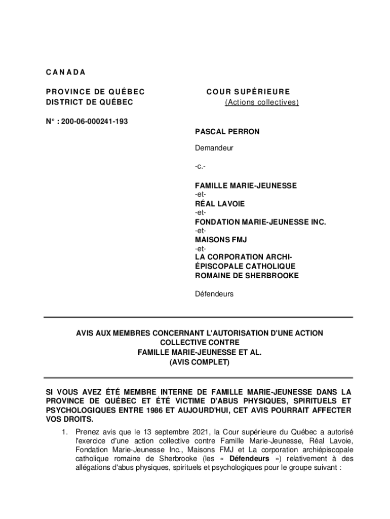 Obtenir le gratuit Famille Marie-Jeunesse vise par une action collective