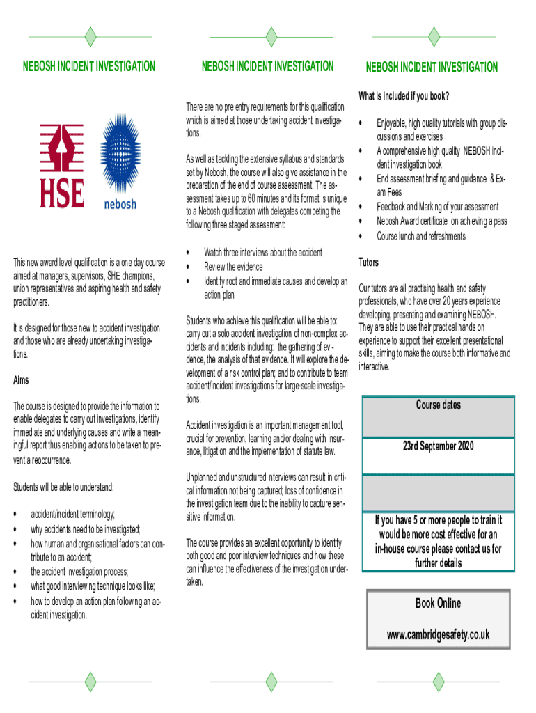 Get the free NEBOSH HSE Introduction to Incident ... - British Safety Council