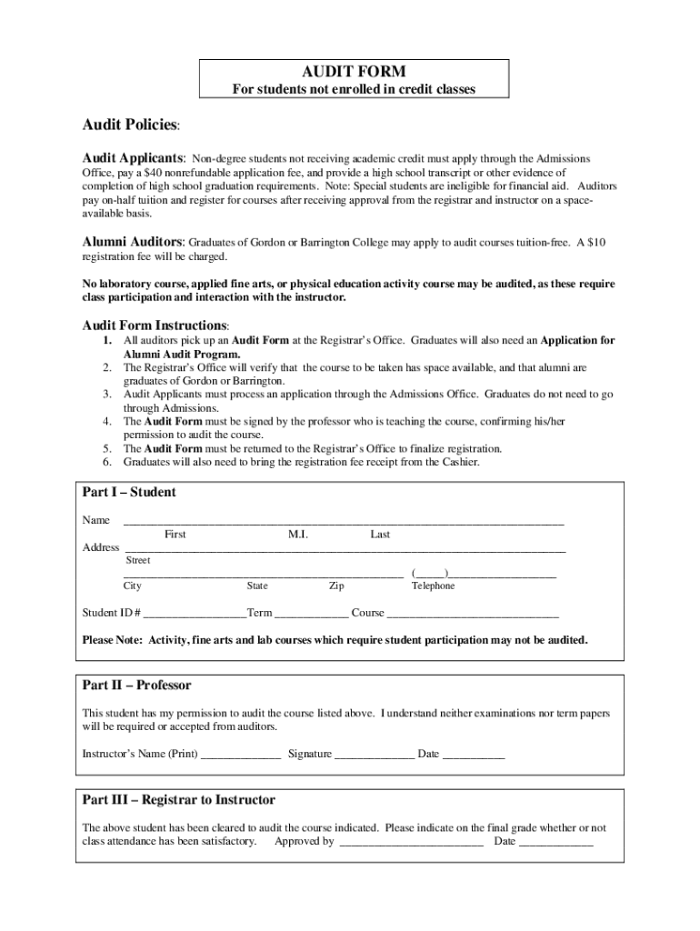 Get the free AUDIT FORM - For students not enrolled in credit classes