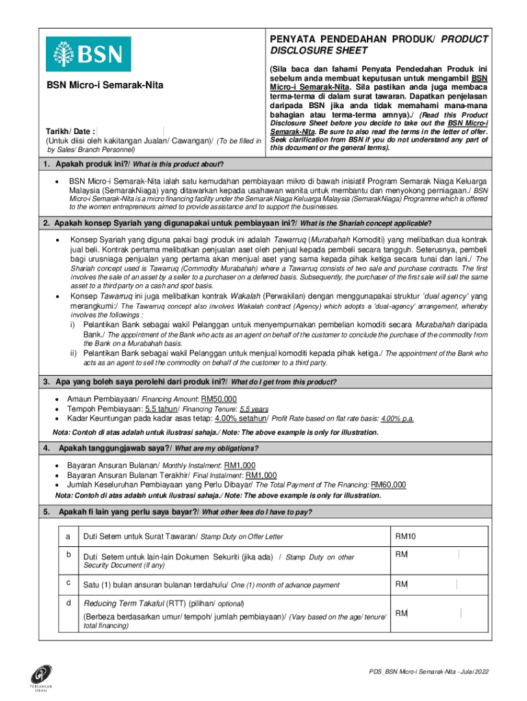 Get the free BSN Micro Semarak PENYATA PENDEDAHAN PRODUK