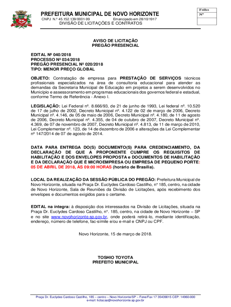 Obtenha o gratuito N - Sistema Municipal de Licitaes - publicacao novohorizonte sp gov