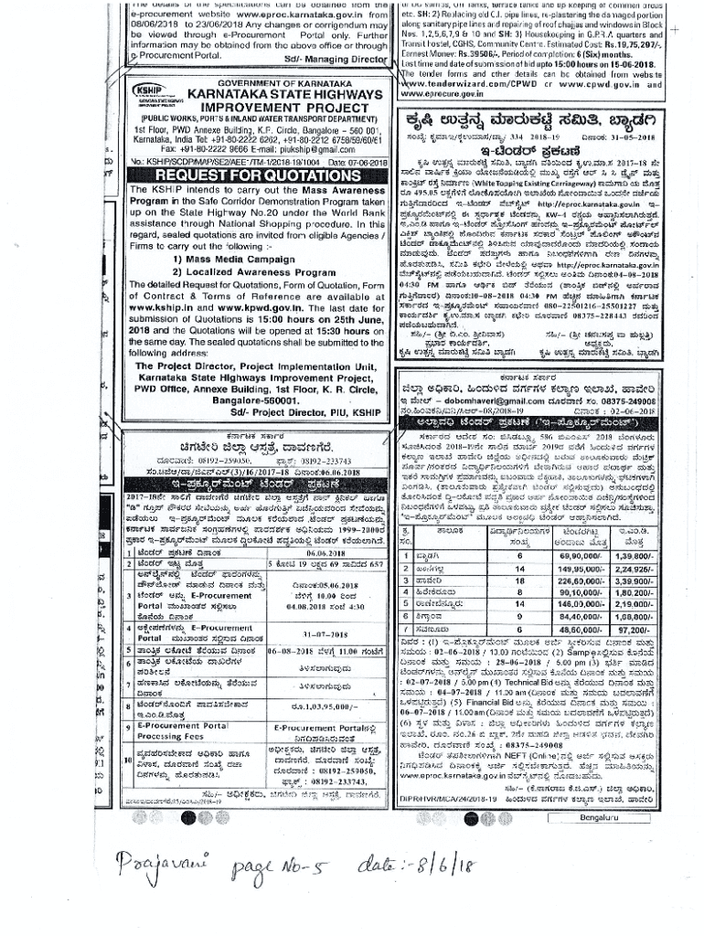 Get the free O/o Project Implementation Unit, Karnataka State Highways ...
