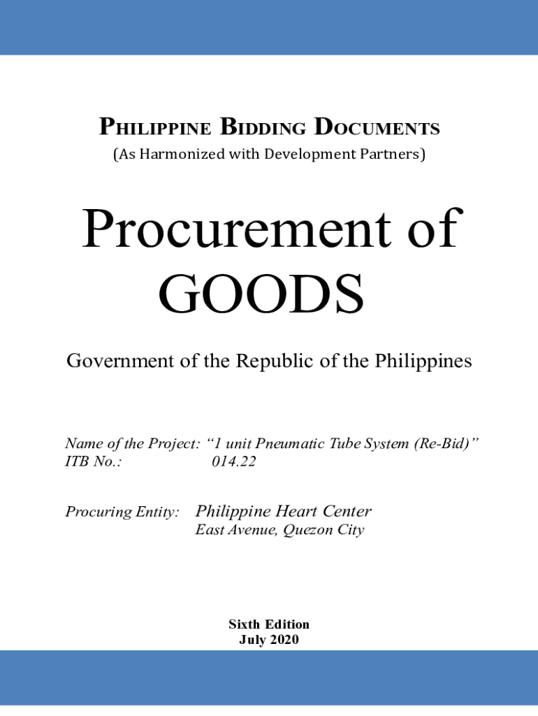 Government of the Republic of the PhilippinesName of the Project: 1 unit Pneumatic Tube System (Rebid)
