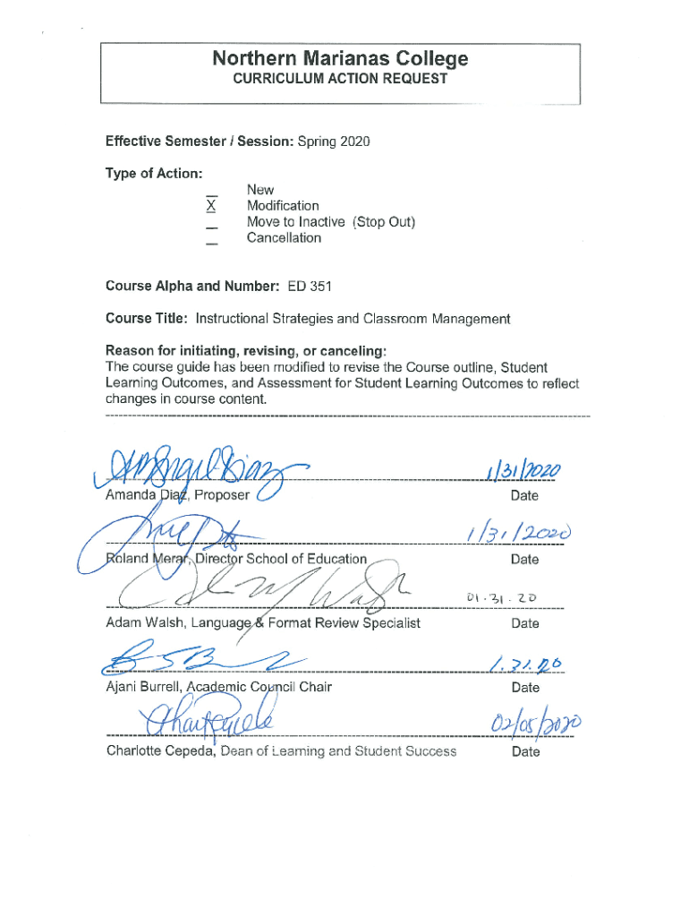 CURRICULUM ACTION REQUESTEffective Semester/ Session: Spring 2020