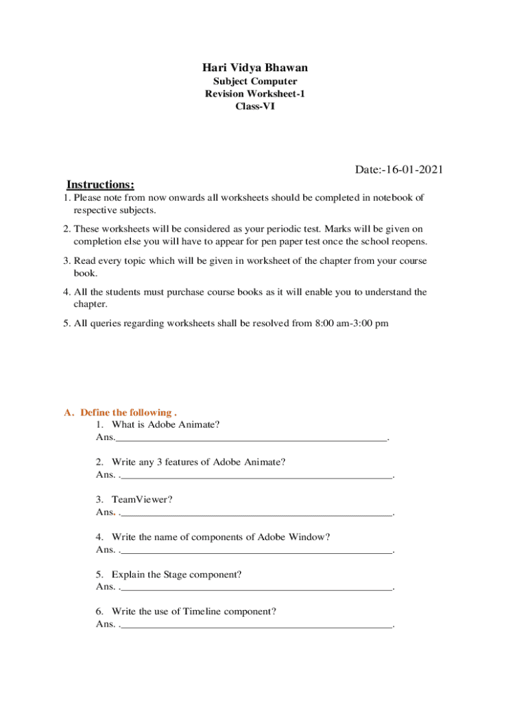 Hard Vida Shawn Subject Computer Revision Worksheet1 Classmate:16012021 Instructions: 1. Please note from now onwards all worksheets should be completed in notebook of respective subjects. 2. These