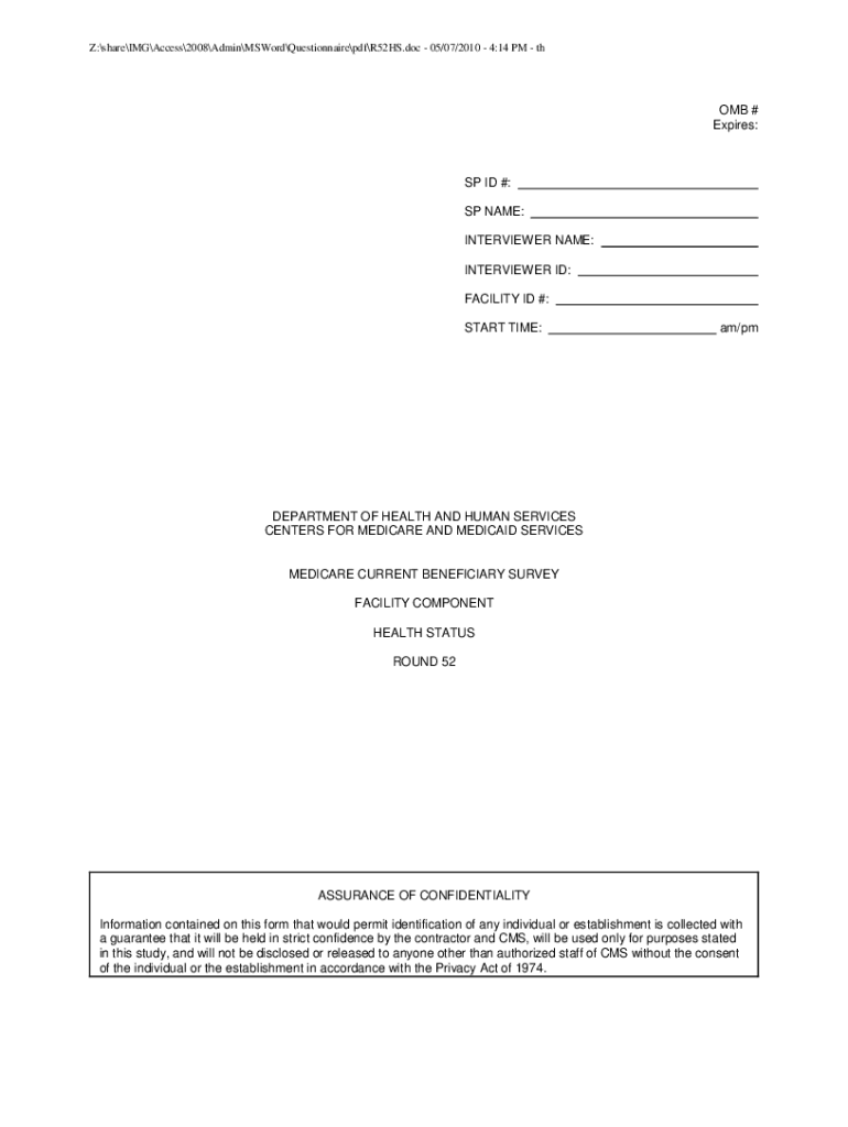Z:shareIMGAccess2008AdminMSWordQuestionnairepdfR52HS.doc 05/07/2010 4:14 PM tomb # Expires:SP ID #: SP NAME: INTERVIEWER NAME: INTERVIEWER ID: FACILITY ID #: START TIME:am/department OF HEALTH AND