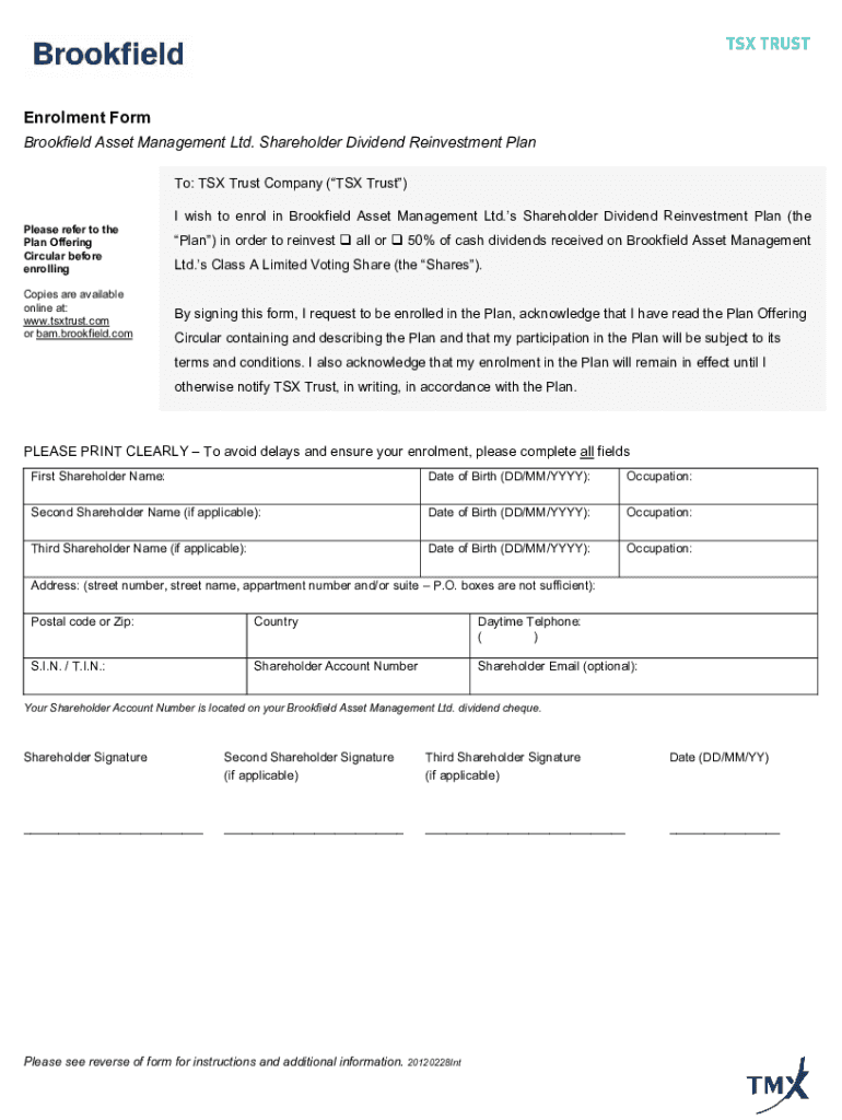 Get the free BAM - DRIP Enrolment Form - Brookfield Asset Management