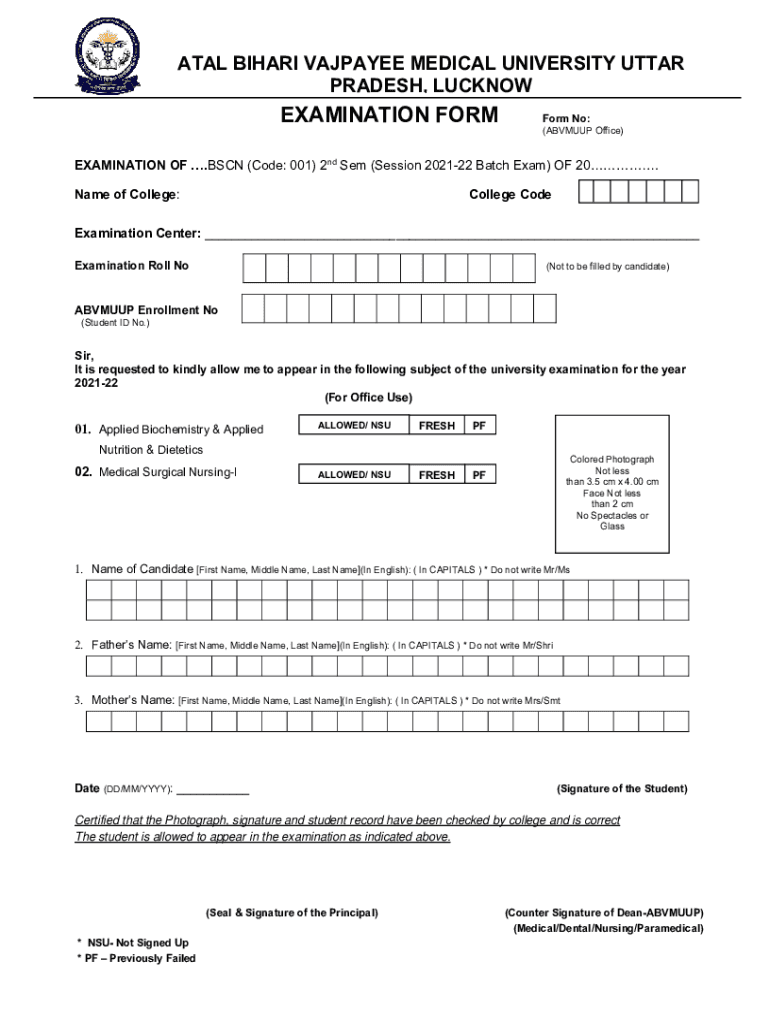 Get the free ABVMUUP-Examination-Application-Form.doc