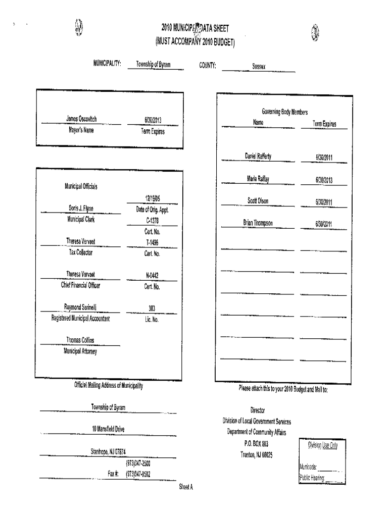 _____2010 MUNICIPAL! )ATA SHEET