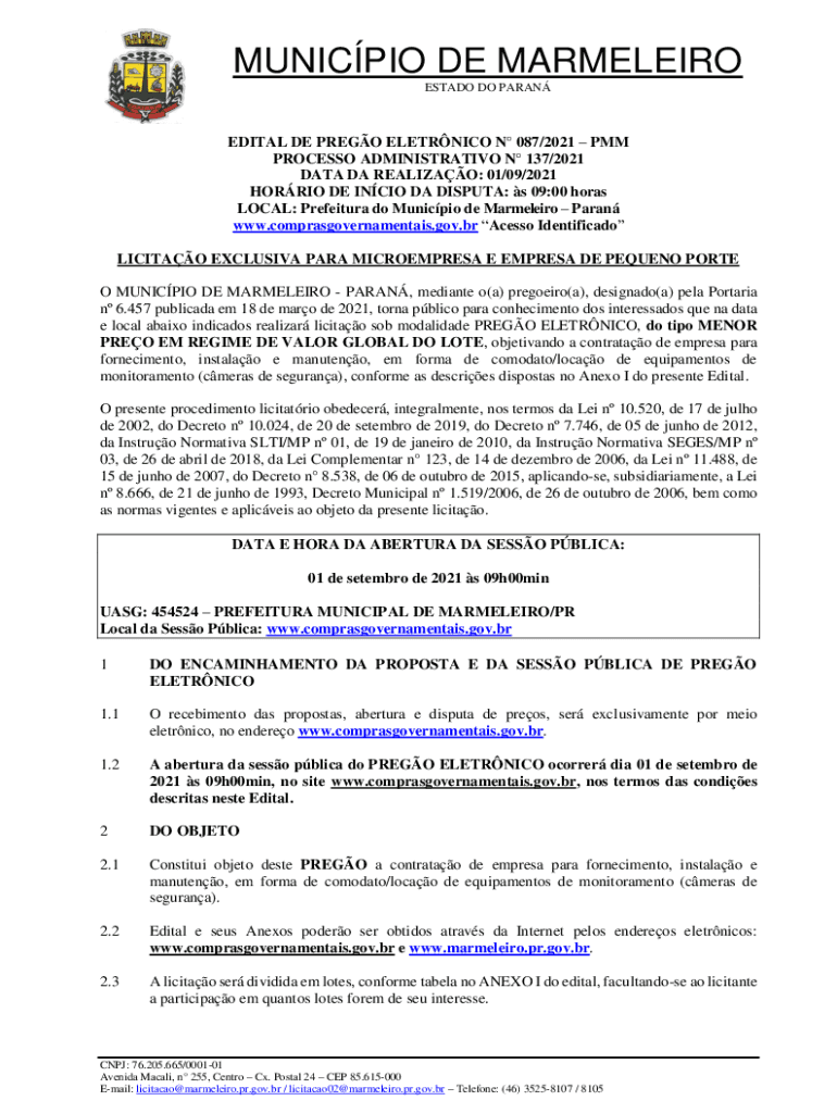 Quais informações devem ser informadas em prefeitura de marmeleiro?