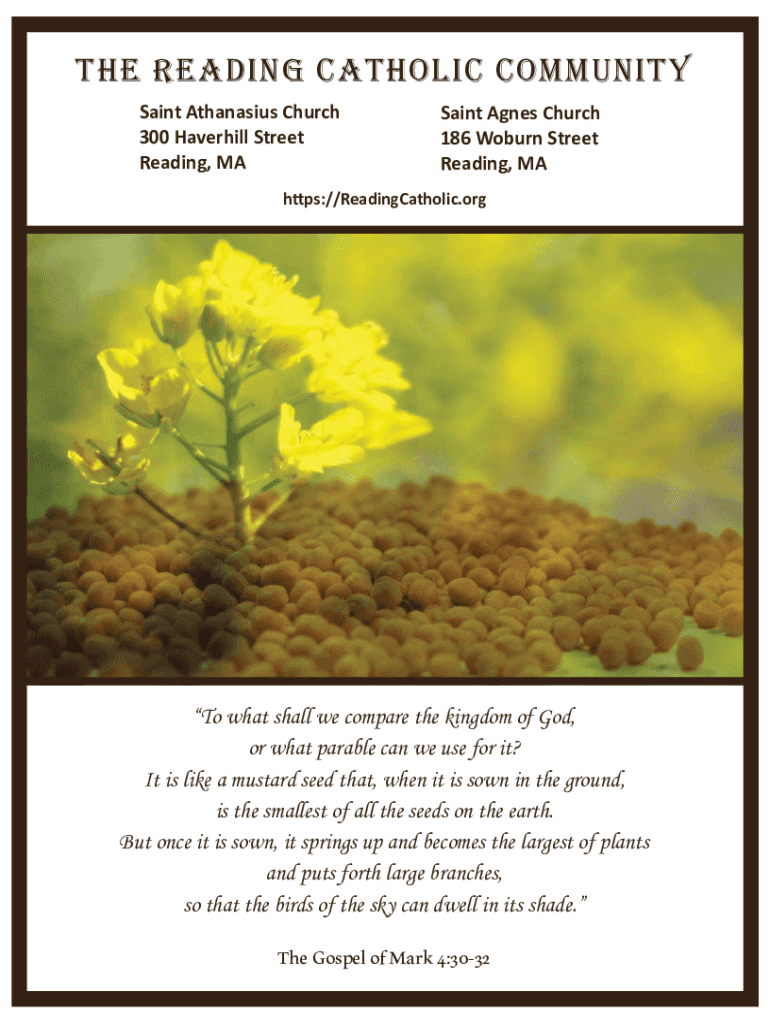 THE READING CATHOLIC COMMUNITY Saint Athanasius Church 300 Haverhill Street Reading, Saint Agnes Church 186 Woburn Street Reading, MAhps://ReadingCatholic.onto what shall we compare the kingdom of