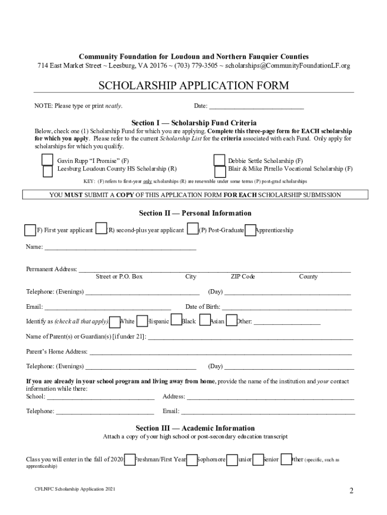 Community Foundation for London and Northern Faultier Counties Return Application by March 26, 2021, via email to scholarships@communityfoundationlf.org. Applications must be on time to be considered.