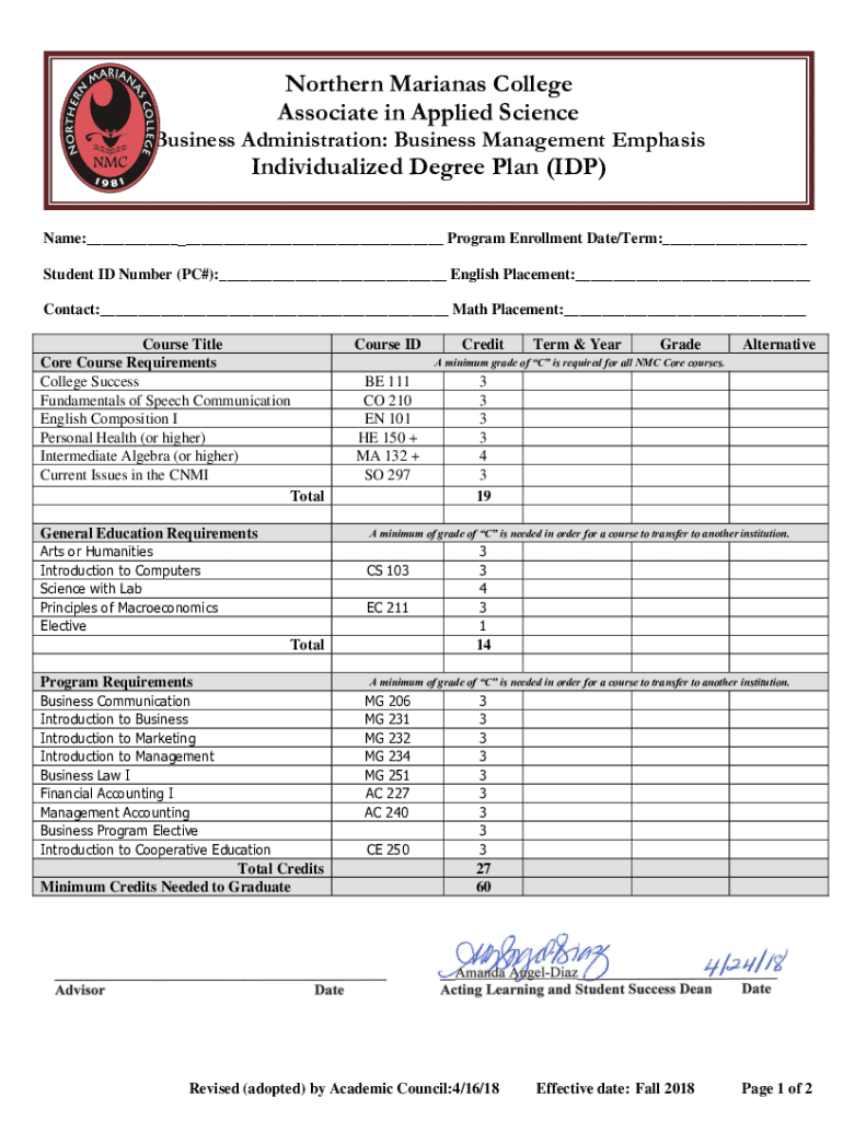 Business Administration: Business Management EmphasisIndividualized Degree Plan (IDP)