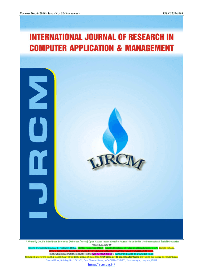 VOLUME NO. 6 (2016), IS Sues NO. 02 (F FEBRUARY)ISSN 22311009A Monthly DoubleClick Peer Reviewed (Refereed/Buried) Open Access Internationale Journal Included in the International Serial Directories