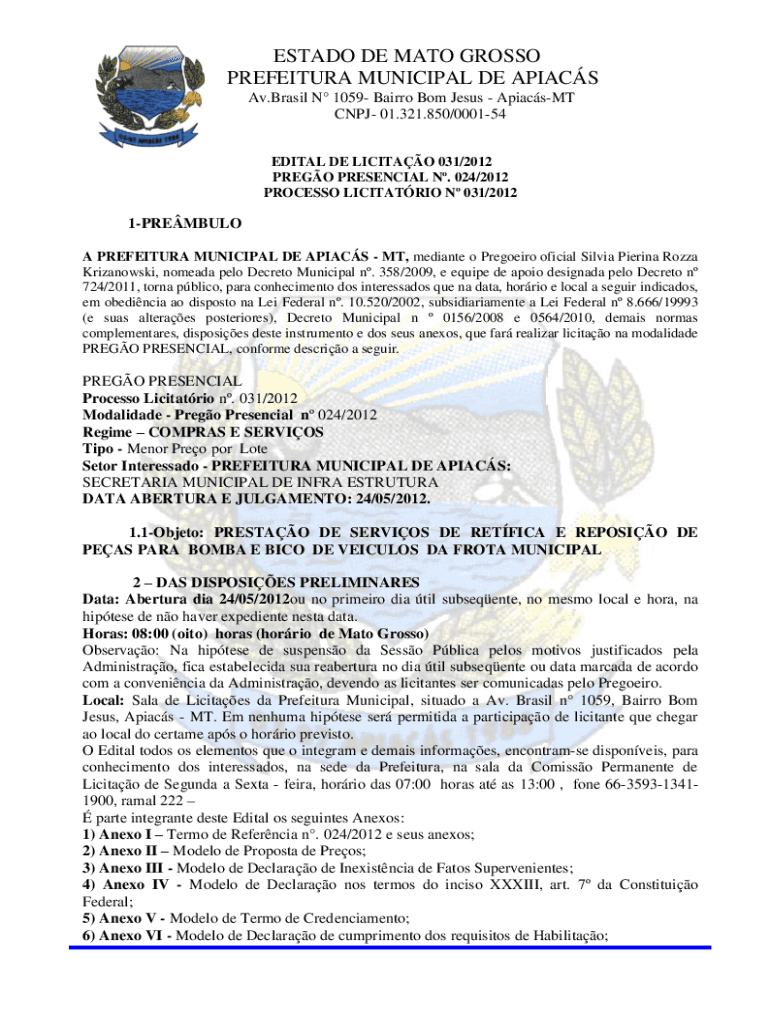 EDIT AL DE LICIT AO 031/2012