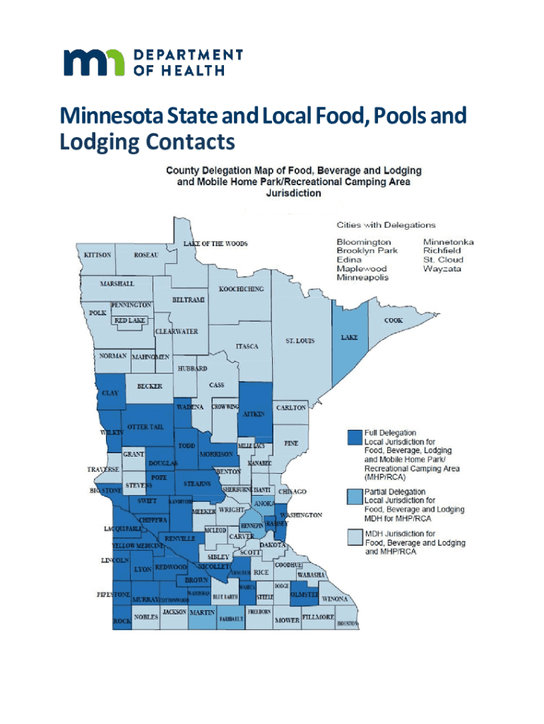 Minnesota State and Local Food, Pools and Lodging ContactsMINNESOTA STATE AND LOCAL FOOD, POOLS AND LODGING CONTACTS2Bemidji District Office ............................. 4Edina, City of ..........................................15Duluth